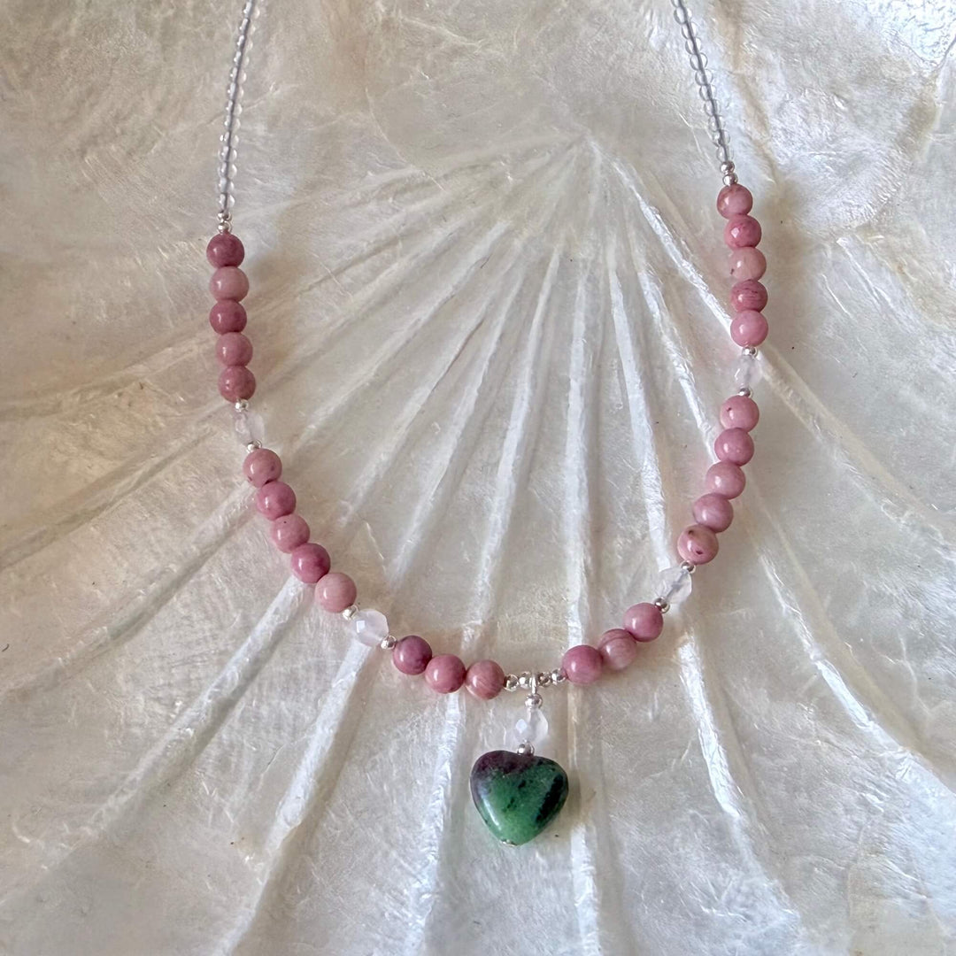 Rose Quartz and Herkimer Diamond Heart Purpose One Of A Kind Necklace