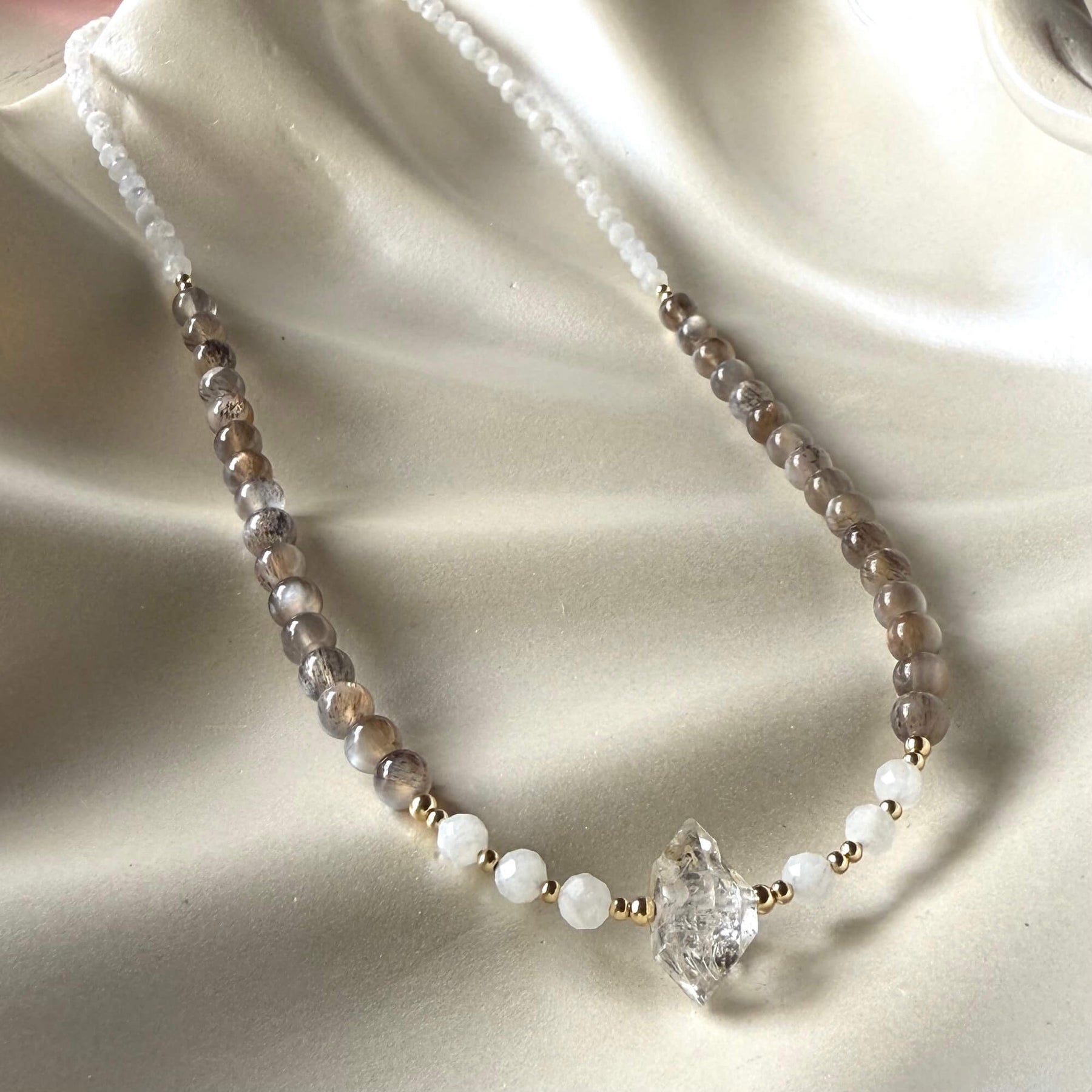 Golden Herkimer, Black Moonstone & Moonstone Necklace