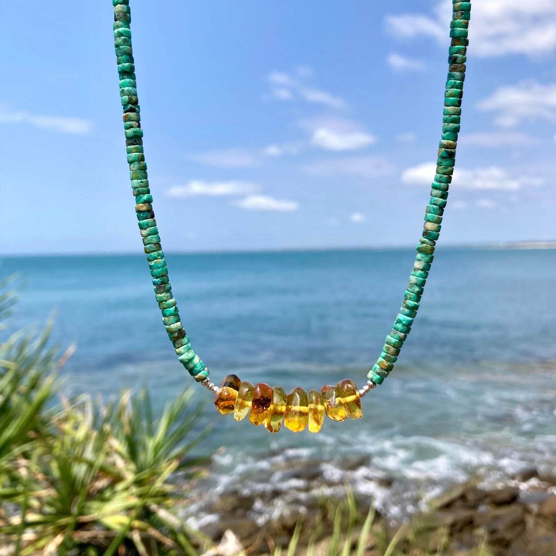 African turquoise & amber necklace