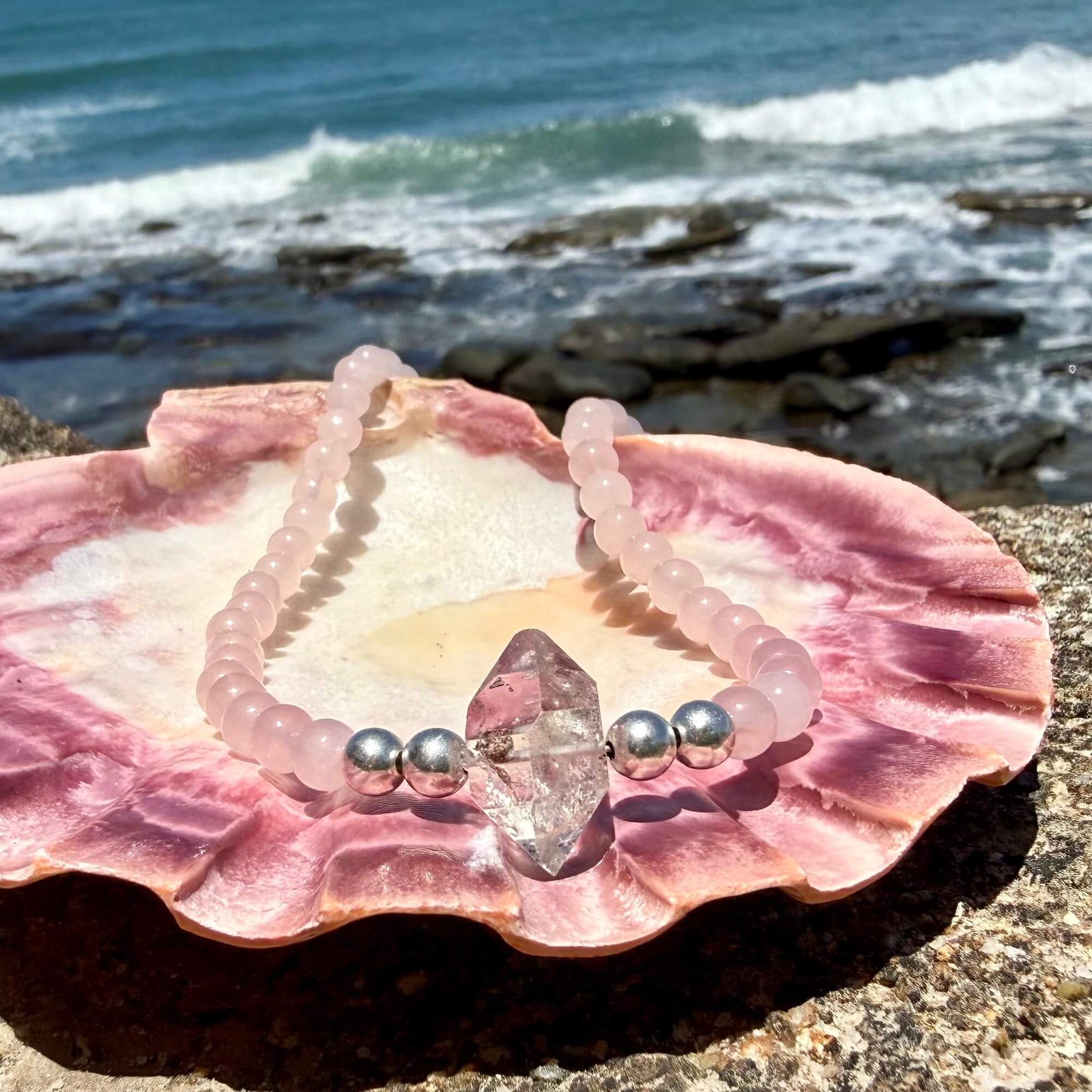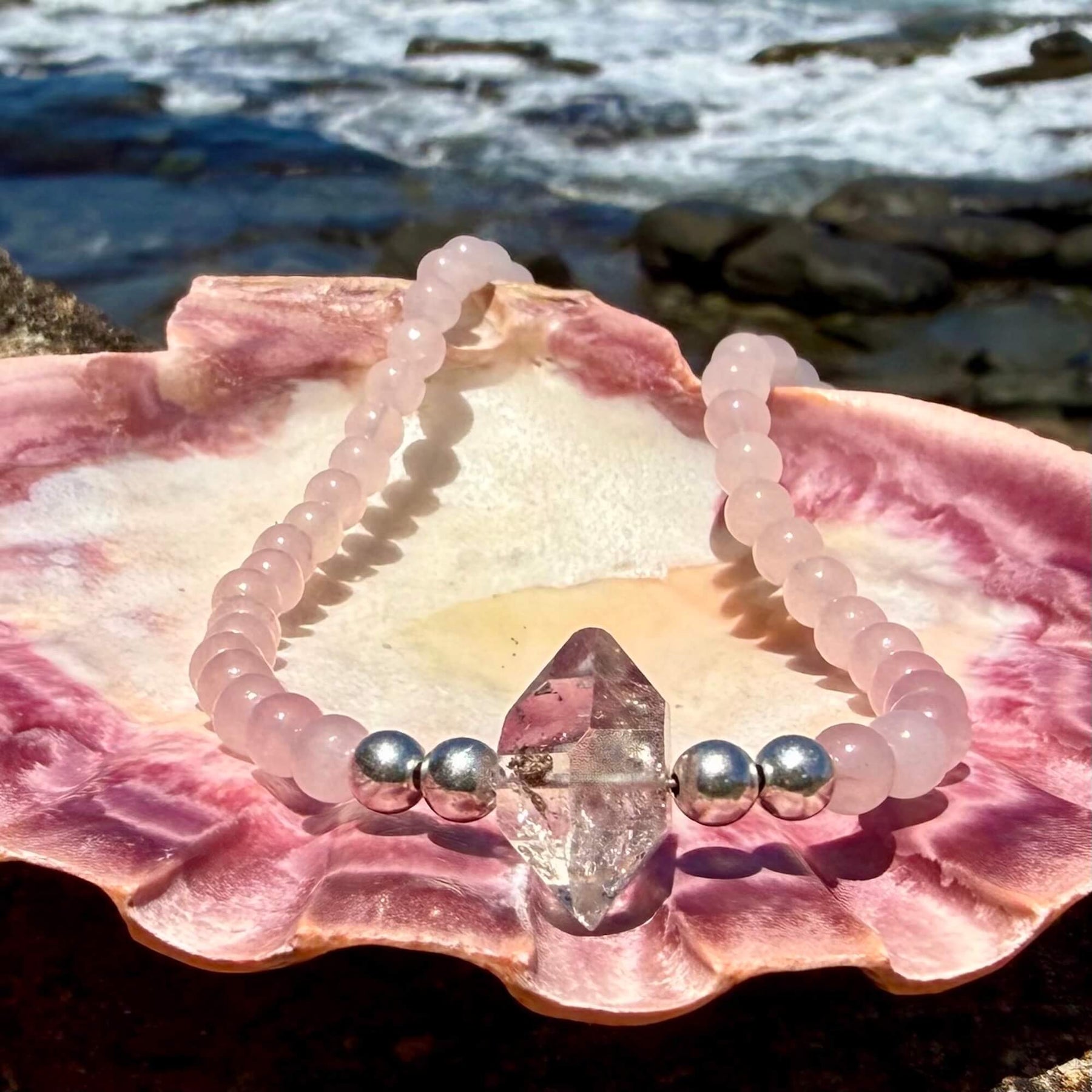 Rose Quartz and Herkimer Diamond Heart Purpose One Of A Kind Necklace